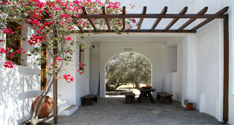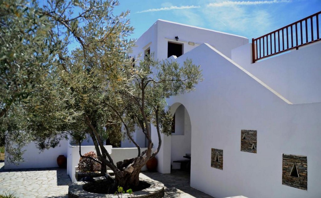 Respecting the Cycladic architecture and the environment, we developed accommodation FANEROMENI in traditional line, with spacious interiors and exteriors decorated with local stone, incorporating, where possible, the old trees that were there.